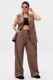 Брюки палаццо – это воплощение элегантности и безупречного стиля. Широкие, струящиеся силуэты, мягко ниспадающие от талии, создают эффект роскошного движения с каждым шагом. Идеальная посадка достигнута за счет эластичной резинки по спинке, которая мягко облегает фигуру, подчеркивая линию талии и обеспечивая комфорт в течение всего дня. Широкие штанины визуально удлиняют ноги, добавляя образу женственности и грации. Функциональность встречает стиль – два аккуратных кармана не только добавляют удобства, но и придают брюкам современный, слегка бунтарский шарм. Ткань высшего качества мягко обволакивает тело, сохраняя форму и безупречный вид даже при активном движении. Эти брюки станут вашим незаменимым выбором как для повседневных образов, так и для особых случаев. Они могут быть стильно сочетаемыми с топами, блузами и обувью разных стилей, подчеркивая вашу индивидуальность и женственность. На модели жилет 1502 и 1683, блуза 1323. Рост модели 173 см, размер 52. Для того чтобы подобрать для себя идеальный размер, обязательно сверяйтесь с замерами в описании, мы их делаем индивидуально к каждому изделию. А если будут вопросы задавайте их менеджерам или пишите в отдел заботы. Размер 42: ОТ (резинка растянута) - 70; ОБ-96; ДИ-109; ширина по низу - 58; Размер 44: ОТ (резинка растянута) - 74; ОБ-100; ДИ-109; ширина по низу - 60; Размер 46: ОТ (резинка растянута) - 78; ОБ-104; ДИ-109; ширина по низу - 60; Размер 48: ОТ (резинка растянута) - 82; ОБ-108; ДИ-109; ширина по низу - 62; Размер 50: ОТ (резинка растянута) - 86; ОБ-112; ДИ-109; ширина по низу - 62; Размер 52: ОТ (резинка растянута) - 90; ОБ-116; ДИ-109; ширина по низу - 64; Размер 54: ОТ (резинка растянута) - 94; ОБ-120; ДИ-109; ширина по низу - 64; Размер 56: ОТ (резинка растянута) - 98; ОБ-124; ДИ-109; ширина по низу - 66; Размер 58: ОТ (резинка растянута) - 102; ОБ-128; ДИ-109; ширина по низу - 66; Размер 60: ОТ (резинка растянута) - 106; ОБ-132; ДИ-109; ширина по низу - 66; Размер 62: ОТ (резинка растянута) - 112; ОБ-138; ДИ-109; ширина по низу - 66;
