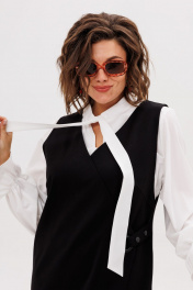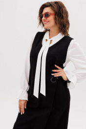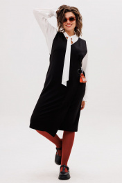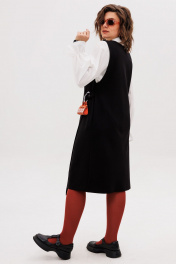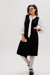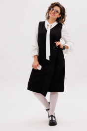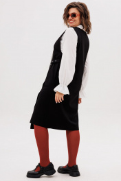 Этот сарафан, выдержанный в строгом прямом силуэте, становится идеальной основой для современного гардероба. Его лаконичную геометрию мягко нарушает игра асимметрии — динамичный, неровный край низа плавно скользит по фигуре, создавая ощущение движения и художественной небрежности. Глубокий V-образный вырез горловины не только зрительно вытягивает шею, но и привносит ноту женственности и открытости, служа идеальным фоном для любимой блузки или тонкого джемпера. Центральным элементом дизайна является изящный запах, который формирует мягкие, пластичные складки и добавляет модели объем и свободу. Эта легкость подчеркнута выразительной деталью — металлический люверс в сочетании с хлястиком на кнопках создает иллюзию застежки, выступая в роли стильного конструктивного и декоративного акцента. Практичность здесь рождается из продуманности: в боковых швах бесшовно интегрированы два кармана, куда можно убрать руки или положить необходимые мелочи. Универсальность этого сарафана от Анелли раскрывается в его способности трансформироваться. Носите его с плотным лонгсливом и массивными лоферами для создания образа в духе интеллектуальной элегантности. Либо позвольте ему заиграть по-новому в паре с воздушной блузкой и изящным каблуком — такой ансамбль станет воплощением утонченной городской эстетики. Это не просто предмет одежды, а многослойная история о стиле, где комфорт и лаконичный крой встречаются с художественным замыслом. На модели блуза 1323. Замеры: Размер 52: ОГ-110, ОТ-112, ОБ-118, ДИ спинка-106, ДИ перед-116; Размер 54: ОГ-114, ОТ-116, ОБ-122, ДИ спинка-106, ДИ перед-116; Размер 56: ОГ-120, ОТ-122, ОБ-128, ДИ спинка-107, ДИ перед-118; Размер 58: ОГ-124, ОТ-126, ОБ-132, ДИ спинка-107, ДИ перед-118; Размер 60: ОГ-128, ОТ-130, ОБ-136, ДИ спинка-108, ДИ перед-120; Размер 62: ОГ-132, ОТ-134, ОБ-140, ДИ спинка-109, ДИ перед-121.