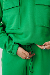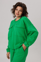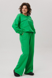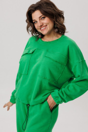 Этот костюм от Анелли — воплощение современной эстетики, где комфорт встречается с безупречным вкусом. Свободный силуэт мягко обволакивает фигуру, даря непревзойденное ощущение уюта и легкости, при этом оставаясь удивительно стильным и целостным ансамблем. Идея кроя заключается в элегантной небрежности, которая способна подчеркнуть достоинства любого телосложения, создавая гармоничный и завершенный образ. Верхняя часть костюма, выполненная в виде объемного свитшота, представляет собой мастерское сочетание расслабленных линий и продуманных деталей. Удлиненная линия плеча и длинные рукава струятся мягкими складками, завершаясь аккуратной манжетой. Фронтальная часть оформлена изящной отрезной кокеткой, а накладные карманы с клапанами, добавляюют образу тактильной выразительности. Низ свитшота, оформленный на кулиске, позволяет вам самостоятельно регулировать степень свободы и объем, делая силуэт именно таким, как вам хочется сегодня. Брюки продолжают философию комфорта, предлагая прямую посадку на эластичном поясе, который мягко сидит по фигуре, не стесняя движений. Лаконичный дизайн дополнен практичными боковыми карманами. Подлинной изюминкой всего комплекта становятся намеренно открытые срезы, привносящие в образ ноту дерзкого шика. На модели образ с жакетом 1658.1 от Анелли. Замеры: Размер 42 Брюки (резинка растянута): ОТ-84, ОБ-98, ДИ-108, Ш (по низу)-56; Свитшот: ОГ-110, ОТ-110, ОТ-110, ОП-40, ДИ-51, ДР-52, ШП-21. Размер 44 Брюки (резинка растянута): ОТ-88, ОБ-102, ДИ-108, Ш (по низу)-56; Свитшот: ОГ-114, ОТ-114, ОТ-114, ОП-40, ДИ-51, ДР-52, ШП-21. Размер 46 Брюки (резинка растянута): ОТ-92, ОБ-106, ДИ-108, Ш (по низу)-56; Свитшот: ОГ-118, ОТ-118, ОТ-118, ОП-40, ДИ-51, ДР-52, ШП-22. Размер 48 Брюки (резинка растянута): ОТ-96, ОБ-110, ДИ-108, Ш (по низу)-58; Свитшот: ОГ-122, ОТ-122, ОТ-122, ОП-42, ДИ-54, ДР-52, ШП-23. Размер 50 Брюки (резинка растянута): ОТ-100, ОБ-114, ДИ-108, Ш (по низу)-60; Свитшот: ОГ-126, ОТ-126, ОТ-126, ОП-42, ДИ-54, ДР-52, ШП-24. Размер 52 Брюки (резинка растянута): ОТ-104, ОБ-118, ДИ-108, Ш (по низу)-60; Свитшот: ОГ-130, ОТ-130, ОТ-130, ОП-44, ДИ-56, ДР-52, ШП-25. Размер 54 Брюки (резинка растянута): ОТ-108, ОБ-122, ДИ-111, Ш (по низу)-60; Свитшот: ОГ-134, ОТ-134, ОТ-134, ОП-46, ДИ-59, ДР-51, ШП-27. Размер 56 Брюки (резинка растянута): ОТ-112, ОБ-126, ДИ-111, Ш (по низу)-62; Свитшот: ОГ-138, ОТ-138, ОТ-138, ОП-46, ДИ-61, ДР-51, ШП-27. Размер 58 Брюки (резинка растянута): ОТ-118, ОБ-132, ДИ-110, Ш (по низу)-64; Свитшот: ОГ-142, ОТ-142, ОТ-142, ОП-46, ДИ-66, ДР-52, ШП-29. Размер 60 Брюки (резинка растянута): ОТ-122, ОБ-136, ДИ-111, Ш (по низу)-64; Свитшот: ОГ-146, ОТ-146, ОТ-146, ОП-48, ДИ-66, ДР-51, ШП-30.