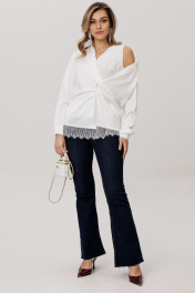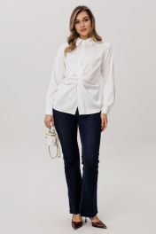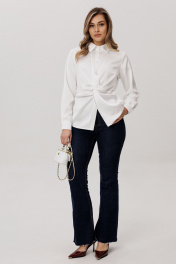 Эта блуза от Анелли - настоящее искусство, воплощенное в нежной, струящейся ткани, которая ласкает кожу шелковистым сиянием Настоящая магия начинается прямо над линией талии, где рождается виртуозная драпировка. Ткань, послушная и пластичная, изящно перекручивается, формируя мягкий, объемный узел из живописных складок. Этот элемент не просто украшение - это скульптурный акцент, который притягивает взгляды, подчеркивает талию и придает всему силуэту уникальный, динамичный характер. Детали довершают образ безупречного качества: строгий отложной воротник на стойке, длинные рукава, заканчивающиеся элегантными манжетами на пуговицу, и аккуратная застежка на петли и пуговицы на притачной планке. Блуза создана для того, чтобы даже самый обычный день наполнился ощущением особенного стиля и утонченной женственности. На моделе в блузе цвета «айс брауни» юбка-кюлоты 1787. Размер 48: ОГ-106; ОТ-102; ОБ-114; ОП-40; ДИ-63; ДР-61; Размер 50: ОГ-110; ОТ-106; ОБ-118; ОП-41; ДИ-63; ДР-62; Размер 52: ОГ-114; ОТ-110; ОБ-122; ОП-42; ДИ-64; ДР-62; Размер 54: ОГ-120; ОТ-116; ОБ-128; ОП-44; ДИ-64; ДР-62; Размер 56: ОГ-124; ОТ-120; ОБ-132; ОП-45; ДИ-65; ДР-62; Размер 58: ОГ-128; ОТ-124; ОБ-136; ОП-45; ДИ-66; ДР-62.