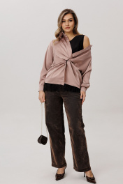 Эта блуза от Анелли - настоящее искусство, воплощенное в нежной, струящейся ткани, которая ласкает кожу шелковистым сиянием Настоящая магия начинается прямо над линией талии, где рождается виртуозная драпировка. Ткань, послушная и пластичная, изящно перекручивается, формируя мягкий, объемный узел из живописных складок. Этот элемент не просто украшение - это скульптурный акцент, который притягивает взгляды, подчеркивает талию и придает всему силуэту уникальный, динамичный характер. Детали довершают образ безупречного качества: строгий отложной воротник на стойке, длинные рукава, заканчивающиеся элегантными манжетами на пуговицу, и аккуратная застежка на петли и пуговицы на притачной планке. Блуза создана для того, чтобы даже самый обычный день наполнился ощущением особенного стиля и утонченной женственности. На моделе в блузе цвета «айс брауни» юбка-кюлоты 1787. Размер 48: ОГ-106; ОТ-102; ОБ-114; ОП-40; ДИ-63; ДР-61; Размер 50: ОГ-110; ОТ-106; ОБ-118; ОП-41; ДИ-63; ДР-62; Размер 52: ОГ-114; ОТ-110; ОБ-122; ОП-42; ДИ-64; ДР-62; Размер 54: ОГ-120; ОТ-116; ОБ-128; ОП-44; ДИ-64; ДР-62; Размер 56: ОГ-124; ОТ-120; ОБ-132; ОП-45; ДИ-65; ДР-62; Размер 58: ОГ-128; ОТ-124; ОБ-136; ОП-45; ДИ-66; ДР-62.