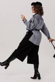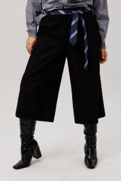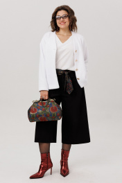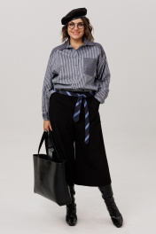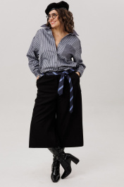 Эти брюки-кюлоты, сшитые с вниманием к деталям, воплощают идеальное равновесие между классической элегантностью и современной свободой. Их силуэт, начинающийся от притачного пояса, мягко расширяется, создавая воздушный объем и невесомое ощущение в каждом движении. Длина, заканчивающаяся на самой изящной части икры, открывает щиколотку, добавляя образу лёгкости и графичности. Идеальная посадка обеспечивается не только кроем, но и тонкой работой мастеров: аккуратные вытачки сзади облегают линию талии, а удобные карманы спереди сохраняют чистоту линий. Практичная застежка-гульфик делает образ завершенным и аккуратным. Это та вещь от Анелли, которая, попав в гардероб, быстро становится его незаменимой основой. Она способна преображаться в зависимости от вашего настроения: в паре с блузой и лодочками она создаст безупречный деловой лук, а в сочетании с объемным свитером и кроссовками - непринужденный и стильный образ для городских прогулок. Эти брюки-кюлоты в цвете «черная материя» дарят не просто комфорт, а чувство уверенности и утонченного вкуса, становясь молчаливым союзником в создании яркого и целостного стиля на каждый день. На модели рубашка 1800, белый жакет 1601 и топ 1664. Размер 50: ОТ-84; ОБ-114; ДИ-78; ширина по низу - 74; Размер 52: ОТ-88; ОБ-118; ДИ-77; ширина по низу - 74; Размер 54: ОТ-94; ОБ-122; ДИ-77; ширина по низу - 76; Размер 56: ОТ-98; ОБ-126; ДИ-77; ширина по низу - 78.