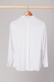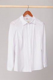 Классическая блуза из мягкой «Ниццы». Прямой силуэт, отложной воротник на стойке. Перед с застроченными односторонними складками и кокетками, переходящие в кокетку по спинке. Застежка по всей длине на пуговицы. По середине спинки застроченная односторонняя складка. Втачной длинный рукав на манжете с застежкой на пуговицу. Изысканно смотрится, выступая сольно, освежая классику - белый верх - чёрный низ. Выпускаем в оттенках пудрового, молочного и голубого! Замеры: ОГ- обхват груди; ОТ- обхват талии; ОБ – обхват бедер; ДИ – длина изделия; ДР – длина рукава. Рост фотомодели – 171 см. Размер 50. ОГ-100; ОТ-104; ДИ-67; ДР-59. Размер 52 ОГ-104; ОТ-106; ДИ-67; ДР-59. Размер 54. ОГ-108; ОТ-108; ДИ-67; ДР-59. Размер 56. ОГ-112; ОТ-110; ДИ-68; ДР-60. Размер 58. ОГ-116; ОТ-114; ДИ-68; ДР-61.