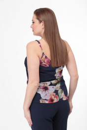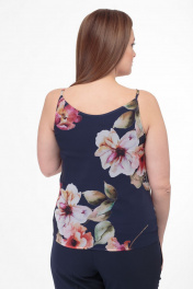 Топ на регулируемых бретелях из легкой ткани с красивым цветочным принтом. Выполнен на подкладке. Может выступать сольно, а также в комбинации с жакетом и другими предметами гардероба. Топ сфотографирован в образе с брюками Anellistyle – 228 синего цвета. Замеры: Рост фотомодели – 171 см. Размер фотомодели – 50. ОГ- обхват груди; ОТ-обхват талии; ДИ- длина изделия. Замеры по нижнему топу-подкладке со спущенными до предела бретелями. Размер 48. ОГ-96; ОТ-98; ДИ-71. Размер 50. ОГ-100; ОТ-102; ДИ-72. Размер 48. ОГ-104; ОТ-106; ДИ-72.