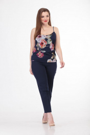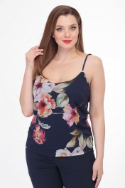 Трендовый топ с цветочным принтом на регулируемых бретелях Anelli 460 синий