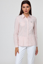 Блуза классического кроя с нагрудными вытачками и съемной брошью Anelli 530 пудра