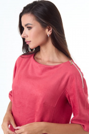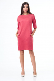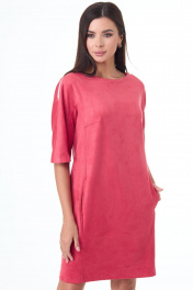 Платье из замшевого полотна с карманами и длинным силуэтом Anelli 551 коралл