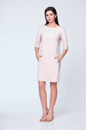 Платье из замшевого текстиля с карманами и короткими рукавами демисезонное Anelli 551 пудра