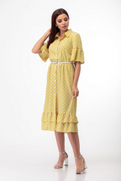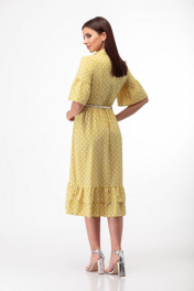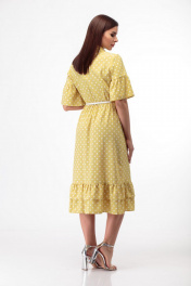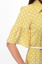 Платье с принтом в горошек и воланами, поясом и отложным воротником Anelli 713 охра