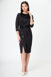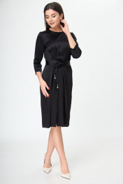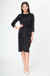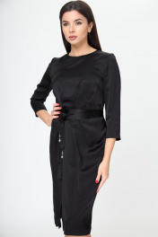 Маленькое черное платье с поясом и складками Anelli 785 черный_текстиль