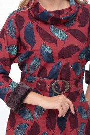Платье выполнено из принтованной ткани с добавлением шерсти. Полуприлегающий силуэт, цельнокроеный рукав, отрезное по линии талии, элегантный вырез-лодочка, удобные карманы в боковых швах, слегка расширенный низ платья. Застежка в боковом шве на потайной молнии сбоку. Правильная длина ниже колена. Зимний образ дополняют съемные манжеты из эко-меха, съёмный воротник-хомут. Любимая нами модель повседневного платья для холодного сезона! Пояс на пряжке в комплекте. Замеры для каждого размера: ОГ- объем груди; ОТ-объем талии; Об-объем бедер; ДИ-длина изделия; ДР-длина рукава. Рост фотомодели – 174 см. Рукавчик ¾ - летучая мышь, замеры от выреза горловины. Р.44 ОГ-90; ОТ-84; ОБ-104; ДИ-99; ДР – 52. Р.46 ОГ-94; ОТ-86; ОБ-110; ДИ-101; ДР – 53. Р.48 ОГ-98; ОТ-90; ОБ-112; ДИ-104; ДР – 53. Р.50 ОГ- 102; ОТ-98; ОБ-116; ДИ-103; ДР – 53. Р.52 ОГ- 108; ОТ-100; ОБ-122; ДИ-107; ДР – 56. Р.54 ОГ- 114; ОТ-106; ОБ-126; ДИ-108; ДР – 58.