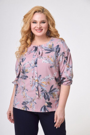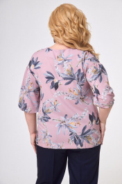 Блуза с нежным принтом и сборками из хлопка Anelli 831 пудра_цветы