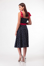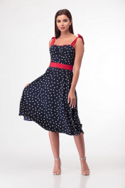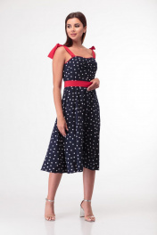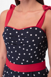 Сарафан из легкой ткани с принтом в горошек-хит сезона! Элегантно и актуально всегда и везде! Минималистичный образ с роскошными в своей продуманности деталями. Полуприлегающий силуэт, отрезное по линии талии. Лиф со складочками в области груди в центральном шве. Низ платья-полусолнце. Дополняет образ завязывающиеся бретели и съёмный пояс красного цвета! Замеры: Рост фотомодели – 172 см. Размер фотомодели – 44. ОГ-обхват груди; ОТ-обхват талии; ОБ-обхват бедер; ДИ-длина изделия (от линии талии). Размер 44. ОГ-94; ОТ-74; ОБ-125; ДИ-66. Размер 46. ОГ-98; ОТ-78; ОБ-129; ДИ-67. Размер 48. ОГ-102; ОТ-82; ОБ-133; ДИ-68. Размер 50. ОГ-107; ОТ-86; ОБ-137; ДИ-69.