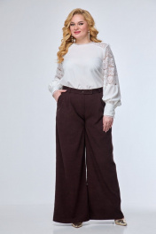 Блуза из ткани в сочетании с тонким кружевом. Нам нравятся такие модели: романтичные на первый взгляд и чувственные при ближайшем рассмотрении. Прямой силуэт. По переду и спинке кружевные кокетки. Втачной рукав на манжете также имеет отделочные детали из кружевного тончайшего полотна. Округлый вырез горловины с отделкой из кружева. Застежка на пуговицы в среднем шве спинке. Отличный выбор в создании образов для любых мероприятий! При съемках для образов использовались так же модели Anelli Style – 903 брюки из эко-кожи бордовых тонов. Замеры: Рост фотомодели – 170 см. Размеры: 48 и 54. ОГ-обхват груди; ОТ-обхват талии; ОБ-обхват бедер; ДИ-длина изделия; ДР-длина рукава Размер 48. ОГ-102; ОТ-106; ДИ-63; ДР-64. Размер 50. ОГ-106; ОТ-110; ДИ-64; ДР-65. Размер 52. ОГ-110; ОТ-114; ДИ-65; ДР-65. Размер 54. ОГ-114; ОТ-118; ДИ-66; ДР-65.