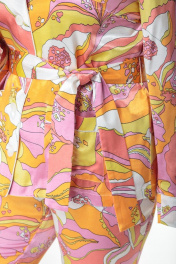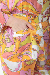 Модные показы 2020 утвердили тренд – пижамный стиль в моде продемонстрировало большинство дизайнеров. Брючный костюм выполнен из нескольких видов ткани: вискозы, сатина и шелка в разных цветовых решениях и призван создать ощущение комфорта и роскоши одновременно. Прямой силуэт блузы с втачными рукавами и свободные брюки на резинке – лежат в основе кроя. Элегантный воротник пиджачного типа, притачные манжеты по низу рукавов и низу брюк с отделкой кантом придают изделию особый изыск. Стоит отметить накладные карманы на блузе и их сложную обработку кантом. В брюках также есть функциональные карманы в боковых швах. Дополнен съемным завязывающимся поясом. Замеры: Рост фотомоделей - 170. Размер фотомодели - 54. ОГ-обхват груди; ОТ-обхват талии (в брюках – резинка в сборе/резинка растянута); ОБ-обхват бедер; ДИ-длина изделия; ДР-длина рукава Размер 44. Жакет: ОГ-96; ОТ-100; ДИ-65; ДР-58. Брюки: ОТ-60/104; ОБ-104; ДИ-102. Размер 46. Жакет: ОГ-100; ОТ-104; ДИ-66; ДР-59. Брюки: ОТ-64/108; ОБ-108; ДИ-102. Размер 48. Жакет: ОГ-104; ОТ-108; ДИ-66; ДР-59. Брюки: ОТ-68/112; ОБ-112; ДИ-102. Размер 50. Жакет: ОГ-108; ОТ-112; ДИ-66; ДР-60. Брюки: ОТ-72/116; ОБ-116; ДИ-102. Размер 52. Жакет: ОГ-112; ОТ-116; ДИ-67; ДР-60. Брюки: ОТ-76/120; ОБ-120; ДИ-102. Размер 54. Жакет: ОГ-116; ОТ-120; ДИ-67; ДР-61. Брюки: ОТ-80/120; ОБ-124; ДИ-102.