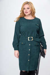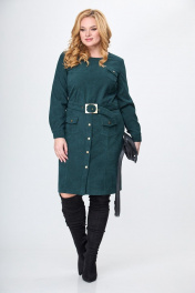 Платье вельвет приталенное ниже колена с карманами Anelli 881 зеленый