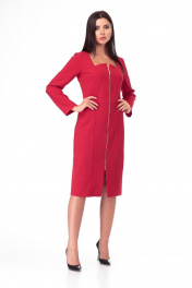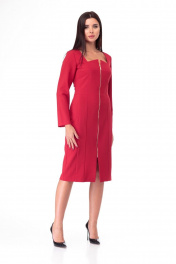 Полуприлегающее платье из текстиля с рельефами и длинным рукавом Anelli 891 красный