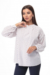 Белая блуза из хлопка с кокетками и разрезом Anelli 892 клевер