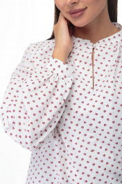 Нежная блузка из мягкого хлопка составит отличный образ своей обладательнице. Блузка прямого силуэта, средней длины. На переде по линии горловины кокетливая сборка, по центру обработан разрез-щель. Рукав покроя реглан , длинный, со сборкой по низу на притачной манжете. Воротник-стойка, по центру застегивается на навесную петлю и пуговицу. ОГ-обхват груди; ОТ-обхват талии; ОБ-обхват бедер; ДИ-длина изделия; ДР-длина рукава Размер 48: ОГ- 114; ОТ-115; ОБ-118; ДИ-62.; ДР–67; Размер 50: ОГ- 118; ОТ-119; ОБ-122; ДИ-62.5; ДР–67.5; Размер 52: ОГ- 122; ОТ-123; ОБ-126; ДИ-63; ДР–68; Размер 54: Ог- 126; ОТ-127; ОБ-130; ДИ-63.5, ДР-68.5; Размер 56: ОГ-130; ОТ-131; ОБ-134; ДИ-64; ДР-69.