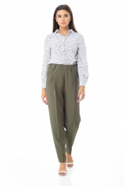 Брюки из текстиля с подкройными кокетками и потайной застежкой Anelli 895 хаки