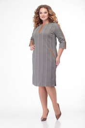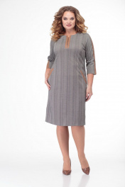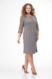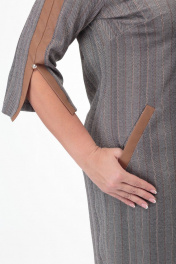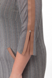 Многоцветное платье из трикотажа с прорезными карманами и складками Anelli 899 серый-капучино