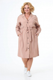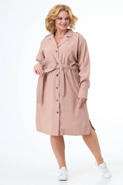 Платье с кулиской, карманами и разрезами из текстиля Anelli 900 капучино
