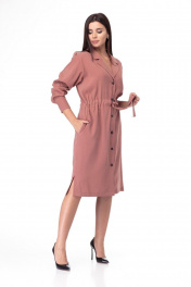 Платье классического кроя средней длины с поясом в стиле на каждый день Anelli 900 терракот