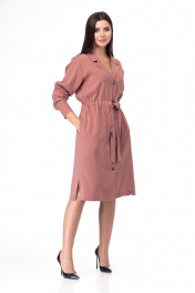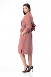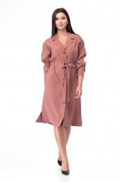 Платье красивого оттенка прекрасно дополнит ваш гардероб! Платье полуприлегающего силуэта средней длины, с кулиской по линии талии и завязывающимся поясом. Английский воротник с лацканами, центральная застёжка на петли и пуговицы. В боковых швах обработаны карманы. На спинке притачные кокетки, по шву притачивания кокетки заложена складка на свободу движения. Линия плеча немного спущена, рукав рубашечного типа, на притачной манжете с застёжкой на петлю и пуговицу. Плечевые швы дополнены погонами. По низу платья обработаны разрезы. Отличный образ на каждый день и не только. Платье можно носить в качестве плаща нараспашку, с брючными и юбочными комплектами - поистине универсальная вещь! Платье без подкладки, ткань слегка тянется. Замеры: Рост фотомодели – 171 см. ОГ-обхват груди; ОТ-обхват талии; ОБ-обхват бедер; ДИ-длина изделия; ДР-длина рукава. Размер 48. ОГ-110; ОТ-100; ОБ-114; ДИ-109; ДР-58. Размер 50. ОГ-114; ОТ-104; ОБ-118; ДИ-109; ДР-59. Размер 52. ОГ-118; ОТ-108; ОБ-122; ДИ-109; ДР-60. Размер 54. ОГ-122; ОТ-112; ОБ-126; ДИ-110; ДР-61. Размер 56. ОГ-126; ОТ-116; ОБ-130; ДИ-110; ДР-61.