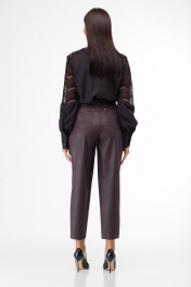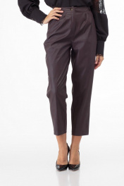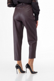 Брюки из экокожи с складками и накладными карманами Anelli 903 коричневый