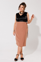 Юбка на запах ниже колена из вискозы для деловых и повседневных образов Anelli 917 коричневый