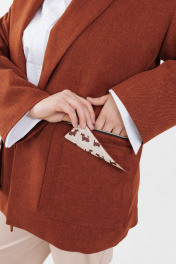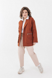 Жакет прямого силуэта, без вытачек. Длиной ниже линии бедер. На передней части выполнены нескучные двойные накладные карманы –с внутренними дополнительными на молнии. Спинка цельная. Отложной воротник пиджачного типа. Линия плеча мягкой формы, спущена, рукава втачные, длинные, одношовные. Застежка центральная на потайные пришивные кнопки. Жакет выполнен на подкладке. Металлическая фурнитура в цвете темный никель дополняет изделие. Комфорт и красота в своем проявлении! При съемке в образе использовали брюки 1223 и рубашка 1203 от Анелли. Замеры: Размер 52: ОГ 122; ОТ 122; ОБ 123; ДИ 80,5; ДР 55 Размер 54: ОГ 126; ОТ 125; ОБ 125; ДИ 81; ДР 56,5 Размер 56: ОГ 131; ОТ 130; ОБ 130; ДИ 81.5; ДР 57 Размер 58: ОГ 136; ОТ 134; ОБ 134; ДИ 82.5; ДР 57