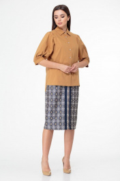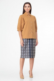 Блуза с объемными рукавами и асимметричным низом Anelli 987 горчица