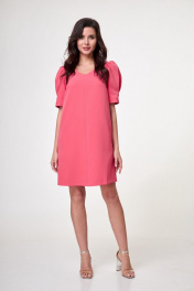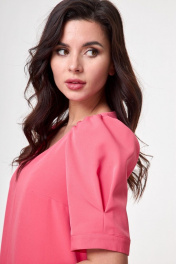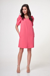 Красное платье прямого силуэта с карманами и объемным рукавом Anelli 995 коралл