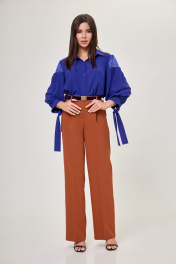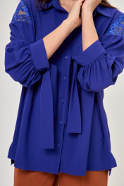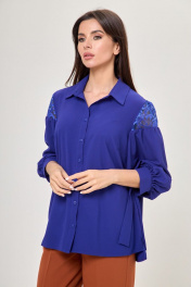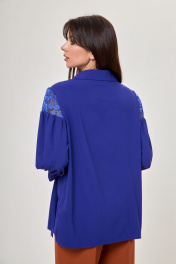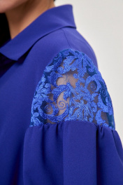 Синяя блуза с кружевами и воротником из хлопка Anelli 997 василек