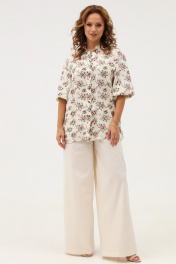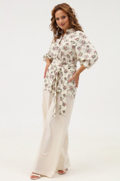 Летний комплект из бежевой блузки и широких брюк Angelina & Сompany 1103
