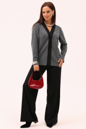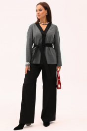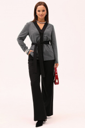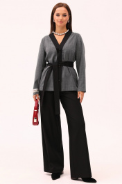 Деловой брючный комплект состоит из прямого жакета и широких брюк-палаццо. Он сочетает в себе сдержанность и элегантность. Этот универсальный комплект подойдет для офиса и работы, а также для повседневной носки и отдыха. Жакет прямого силуэта, без подкладки. Вырез горловины V-образной формы. Перед с центральной застежкой на петли и пуговицы и нагрудными вытачками. Край борта полочки обработан притачной планкой контрастного цвета. Рукав втачной длинный. Широкие брюки с высокой посадкой, с поясом на резинке. В боковых швах имеются функциональные наклонные карманы. В комплекте завязывающийся пояс контрастного цвета. Длина жакета: 63 см Длина рукава: 60 см Длина брюк (с поясом): 117 см