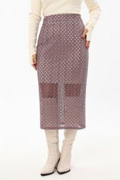 Модная удлиненная юбка-карандаш из кружевной ткани. Юбка поможет создать неповторимый образ и привлечь восхищенные взгляды окружающих. Подойдет как для романтических свиданий и торжественных мероприятий, так и для деловых встреч. Юбка прямая с завышенной талией длиной ниже колена, на подкладке. Верх на широком притачном поясе со вставками эластичной тесьмы. Застежка на молнию в среднем шве. На переднем полотнище вытачки, на заднем - вытачки и разрез в среднем шве. Длина юбки (с поясом): 85 см