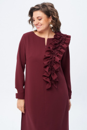 Элегантное платье с изысканной рюшей позволит Вам выглядеть эффектно и женственно в любой ситуации. Это отличный вариант для торжественных и вечерних мероприятий. Платье свободного силуэта из костюмно-плательной ткани. Горловина округлой формы со стойкой. Перед платья с застежкой на молнию в среднем шве и нагрудными вытачками. Платье украшает декоративная съемная рюша на пуговицах. Спинка со средним швом. В боковых швах обработаны функциональные карманы, а по низу платья - разрезы. Рукав втачной длинный, по низу манжета с застежкой на петлю и пуговицу. Длина платья: 117 см Длина рукава: 60 см