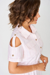 Элегантное женское платье рубашечного кроя из джинсовой хлопковой ткани - просто находка для модниц. Универсальный крой и натуральная ткань сделают его любимым изделием Вашего гардероба в летний период. Отлично подойдет для любого мероприятия или повода: на деловой или дружеской встрече, в офисе или кафе. Платье полуприлегающего силуэта, расклешенное книзу. Воротник отложной, на притачной стойке. Платье отрезное по линии талии, на широкой резинке. Платье с центральной застежкой на петли и пуговицы на притачных планках. Полочка с нагрудными вытачками и накладными карманами со складкой и клапаном. В боковых швах юбки функциональные карманы. Рукав втачной короткий, с открытым плечом, понизу - притачная манжета и декоративная пата на пуговице. Длина платья: 131 см Длина до талии: 40,5 см Ширина пояса: 5 см Длина рукава: 22 см