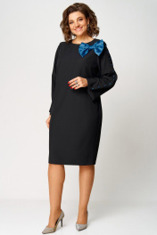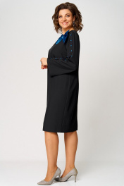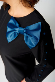 Эффектное платье классического черного цвета выручит в любой ситуации. Вы будете роскошно выглядеть и на официальном, и на любом торжественном мероприятии. Фасон платья подойдет на любой тип фигуры, выгодно скроет недостатки и удачно подчеркнёт достоинства. Платье женское полуприлегающего силуэта из костюмно-плательной ткани. Горловина округлой формы. Перед с нагрудными вытачками. Спинка с талиевыми вытачками, застежкой на молнию и разрезом в среднем шве. Рукав втачной прямой длинный с разрезом и декоративной застежкой на петли и пуговицы. По низу платья в боковом шве высокий разрез. Декорировано платье съемным бантом. Длина платья: 101 см Длина рукава: 62 см
