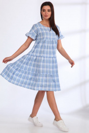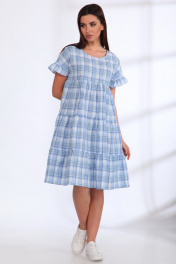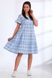 Летнее хлопковое платье с объемными воланами и рукавом-рюшей Angelina & Сo 537/1 голубой