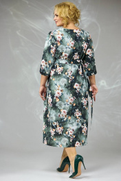 Женское платье из легкой летящей ткани свободного силуэта. Рукав 3/4 со сборкой по пройме и с резинкой по низу рукава. К платью прилагается пояс из той же ткани. Длина платья 126 см