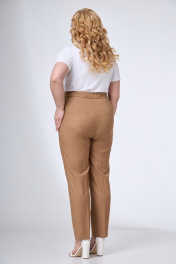 Классические женские брюки со стрелками идеальны для работы и повседневной носки в теплую погоду. Брюки зауженные книзу с высокой талией на притачном поясе с застежкой на пуговицу. По задним половинкам собраны на эластичную тесьму, которая делает их комфортными и удобными для любых размеров. Передние половинки с наклонными карманами и застежкой на молнию в среднем шве. На задних половинках вытачки. Классические брюки -это отличная база для эффектных летних комплектов. Длина изделия: 106 см