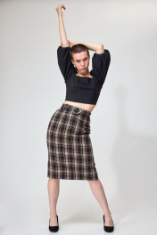 Юбка-карандаш из костюмной ткани в клетку придаст элегантность и женственность. Это один из классических вариантов одежды востребованный для любого случая. Такая юбка непременно должна входить в базовой гардероб любой девушки и женщины, независимо от того, какая у ее обладательницы фигура, какой возраст и какой стиль одежды она предпочитает. Юбка прямая, немного зауженная книзу, длиной ниже колена, на подкладке. Верх на притачном поясе со шлевками и вставками эластичной тесьмы по спинке. Застежка на молнию в среднем шве. На переднем полотнище вытачки, на заднем - вытачки и шлица в среднем шве. В комплекте съемный пояс из основной ткани с пряжкой. Длина юбки (с поясом): 69 см