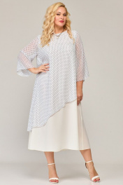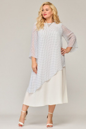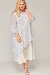 Нежное женское платье из шифона - идеальный выбор для той женщины, которая стремится выглядеть стильно и элегантно. Платье актуально, как для ежедневной носки, так и для романтических встреч и праздничных выходов. Двухслойное платье А-силуэта, длиной до середины икры. Горловина округлой формы, по спинке разрез и застежка на навесную петлю и пуговицу. Верхний слой по переду с нагрудными вытачками и ассиметричной линией низа. Нижний слой из однотонной ткани, по спинке со средним швом. Рукав втачной широкий, длиной ¾. Длина платья: 121 см Длина рукава: 48 см