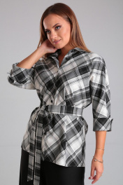 Ультрамодная блузка в клетку - идеальный вариант для повседневной носки. Стильная и элегантная блузка отлично впишется в Ваш гардероб, ведь ее можно надевать на любые мероприятия. Современный крой позволит Вам собрать на себе множество восторженных взглядов и комплиментов! Блузка будет отлично сочетаться с любыми джинсами или юбкой. Комплект будет идеально смотреться как с классической обувью, так и с кроссовками или кедами. Блузка прямого силуэта. Воротник рубашечного типа. По переду центральная застежка на петли и пуговицы и накладной карман. Рукав цельнокроеный длинной 7/8, по низу рукава отложная манжета. Длина блузки: 73 см Длина рукава (с манжетой): 59 см