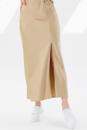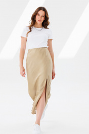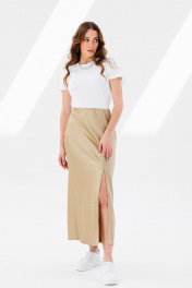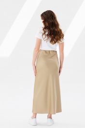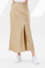 Юбка атласная трапециевидная с разрезом и скрытой резинкой ANIDEN 124-1 бежевый