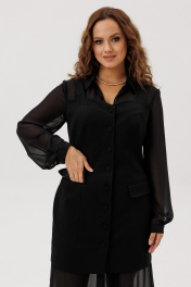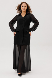 Костюм из жакета с иммитацией рубашки и широких брюк. Жакет из костюмной ткани малого объема,приталенного силуэта с иммитацией рубашки из шифона, на частичной подкладке по переду. На широких бретелях. Длина жакета по спинке - 83 см. Длина рукава с шириной манжета - 63см. Брюки широкие на подкладке. Застежка на потайную молнию в боковом шве, на поясе, по спинке резинка. Рост модели на фото 170 см.