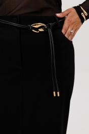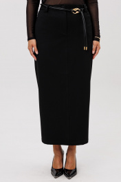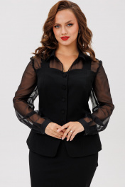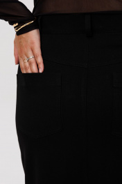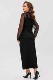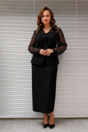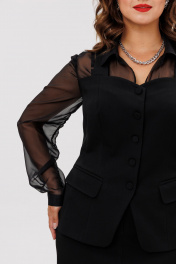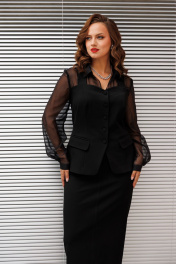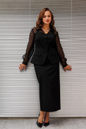 Костюм из жилета с иммитацией рубашки и юбки.Жилет из костюмной ткани малого объема,приталенного силуэта с иммитацией рубашки из шифона, на частичной подкладке по переду. На широких бретелях. Длина жилета по спинке - 62 см. Длина рукава с шириной манжета - 63см. Юбка умеренного объема, прямого силуэта. На переднем полотнище карманы с отрезным бочком и застежка в среднем шве. По спинке разрез-шлица в нижней части шва, накладные карманы. С двойными отделочными строчками по швам. Длина юбки миди, с шириной пояса - 93см. Рост модели на фото 170 см.