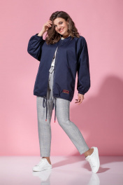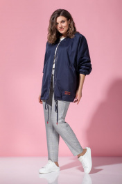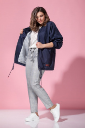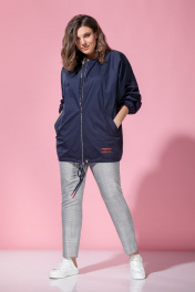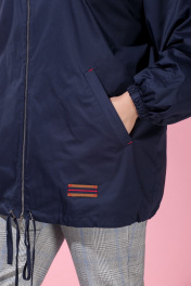 Стильная куртка из хлопковой ткани свободного кроя. Рукава кроя реглан с манжетой на резинке. Горловина с втачным воротником-стойкой. Застежка центральная на металлическую молнию. На полочке обработаны карманы-листочки. Курка по низу на кулисе. Изделие на подкладке. Длина куртки - 74,5 см. Длина рукава - 62 см.